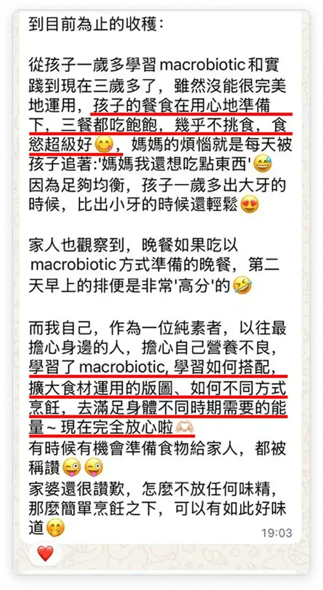 “孩子能稳定进食、不挑食,排便顺,精神好;全家饮食变简单,却更容易被身体接受。”