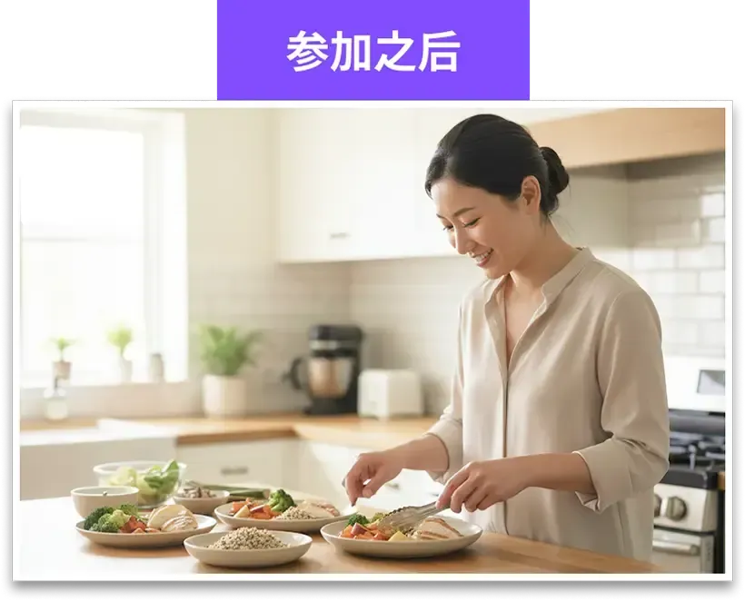 因为现在的人生活真的很忙,也常常外食。Jeccy 老师教的方法很落地,让我可以很轻松地学会备餐,就算时间不多,也能在家煮一顿饭,好好吃一顿,滋养自己的身体。